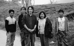 〈ネパールの村にて 中央が新垣誠〉