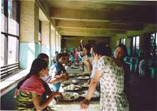 9時に朝ごはんをとってから、仕事に入り、5時に終わります。エプロンなら6、7枚縫えます。6時に夜ごはん、料理も少し手伝います。皆でおしゃべりをして自分の部屋で勉強の復習をして10時に寝ます。休みの日にはホールのテレビで映画を観ることが楽しみです。ここで働いて技術を身につけ、できるだけここで生活したいと思っています。