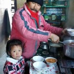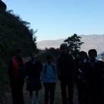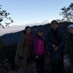 道中、標高2450mのシェルパの村で朝ごはんにトゥッパを食べました。背にしているのは標高8500mのカンチャンジャンガです。今はイラムまで来ました。