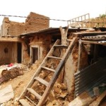 竹かご職人トゥリさんの村に行き、被害の状況を見ました。カトマンズ中心部から1時間程の郊外です。都市部と比較すると、住めなくなった家の割合は多いのですが、手近な素材で避難小屋を作っていたり、2階建を平屋にして住めるように修理を始めるなど、たくましさに感動しました。