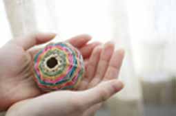 そして工房で、ある糸玉を見付けた時、はっとしました。それはほんの5センチ程の糸をつなぎ合わせて、ぼつぼつになった糸を玉にしたものでした。それを見て、「これならできる!」と思いました。こんなに物を大切にする人達なら、きっと私の想いは通じると思いました。そして、私にできることは精一杯しなければと思いました。
