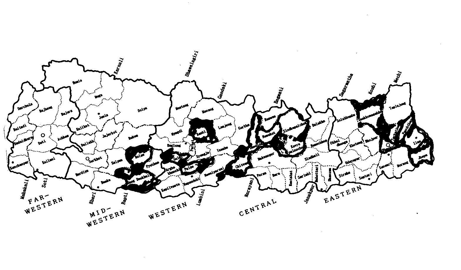 極西ネパールのネパールガンジー、ダンガリ、ジュムラの地域も含まれます。