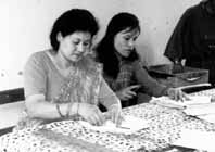 シャンティさんは歓迎して、作業場を案内して下さった。夫に離縁されたり、死別したり、体にハンディを持っていたりという女性達が70人ぐらい働いていた。生活手段を持たぬ彼女達を雇用し、技術を教え、製品を作り、暮せる様にとシャンティさんは熱っぽく説明してくれた。