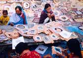 ジャナカプールの女性達の受け継いできたアートを商品化し、少しでも彼女らの収入を確保しようと1989年JWDCが設立された。9年前に現在のクワ村に移った。空港からも近く、広い敷地にジャナカプールの伝統的な家々がセクション毎に分れて並び、真中にチョウタリ(菩提樹等の大きな木の下にある休憩スペース)もあり、明るく健康的だ。アメリカ、カナダ、日本からの援助も多く、入りたい女性たちがたくさん待っていた。以前募集した時も数倍の応募があり、面接で15人に絞った。今ではメンバー80人が絵を描いたり、Tシャツやクロスにプリントしたり、茶碗やカップなどの焼き物を作ったりと働いている。
