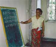 家族は父、母、兄妹は全部で6人、ビバさんは上から2番目です。地主の畑で、朝8時から5時まで両親とともに畑仕事をしていたので、学校は途中で辞めざるを得ませんでした。今は家族と離れアシュラムで職業訓練を受けながら、将来のために技術を身に付けています。ちょうど2年たち、トレーニングは修了、最近は輸出用のエプロンやズボンを作っています。朝は5時に起きて、皆ひとつの部屋に集まり、お祈りをしてガンディーの好きだったという歌を合唱します。朝日の差し込む部屋で、50人の女性たちが静かに目を閉じて祈ります。まるで穏やかな朝に感謝しているようです。掃除をして7時から授業です。ネパール語や英語や保健などを学びます。特に好きなのは保健です。体のことを学ぶことは大切だと思うからです。アシュラムで20年ネパール語を教えているジャナキ・シュレスタさんは「ここで学んだことが自立への第一歩になります。ここを出た後、事務職についた女性もいます。それは私にとって大きな喜びです」と言います。